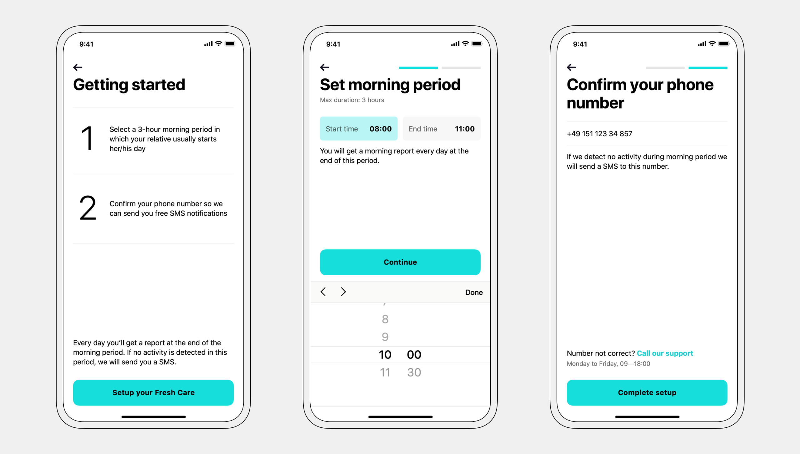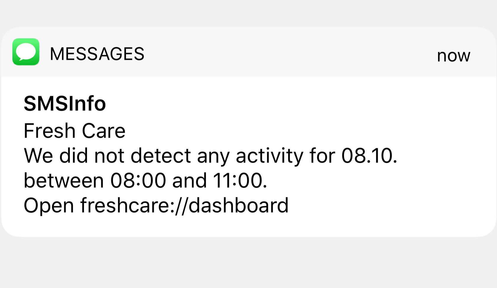 The most important part of Fresh Care is outside the app. SMS alerts are sent at the end of the morning period if there is no activity. They also get sent out if there are errors, whether with the internet, algorithm, or data inconsistency.