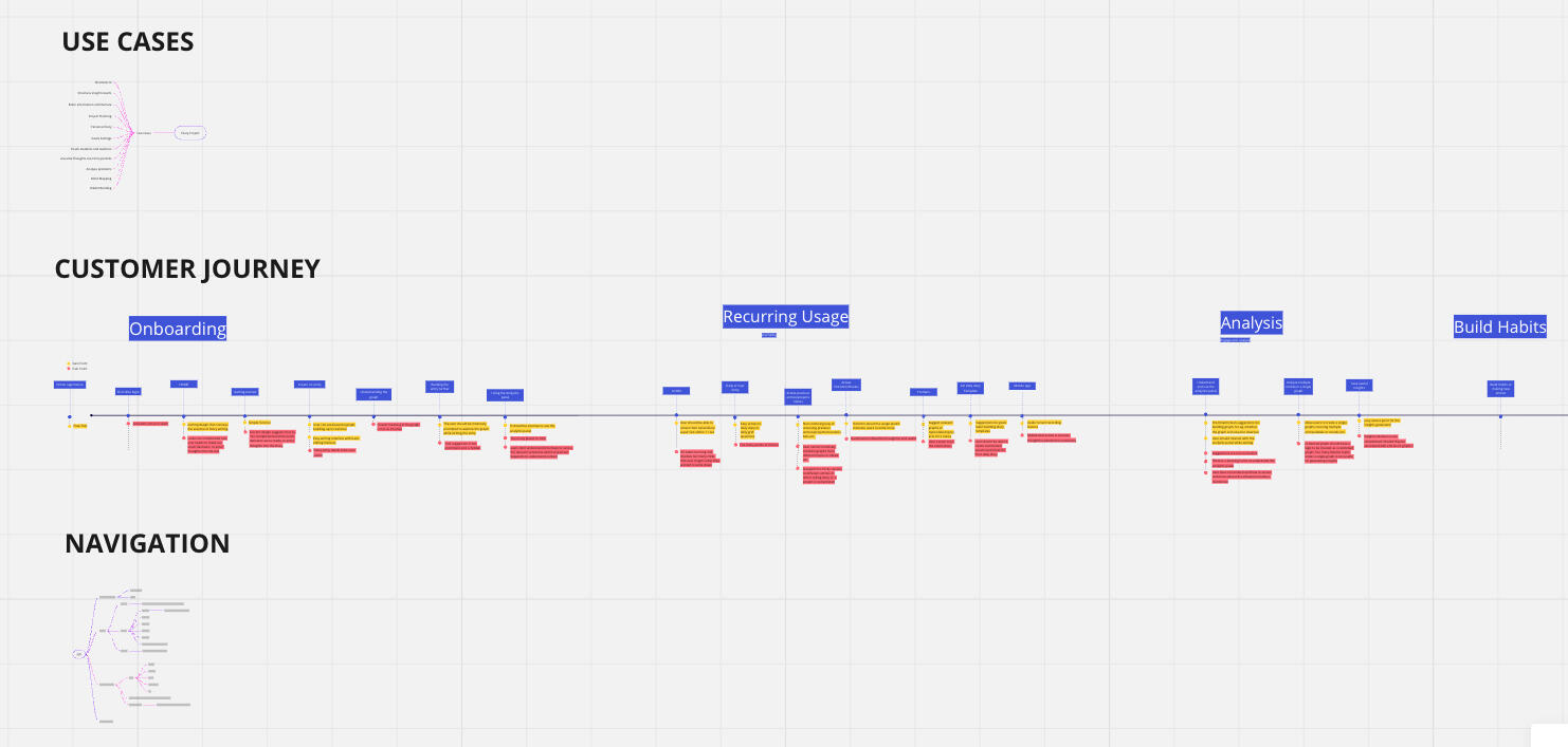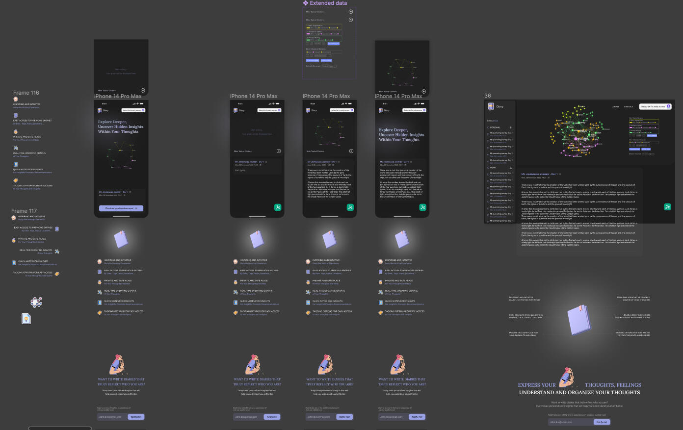 Enhanced Self-Reflection with Infranodus:Infranodus, with its advanced graphical analysis, has the potential to delve into and reveal profound personal insights. My vision involved simplifying the Infranodus experience by minimizing its broader features to focus on this particular niche use case. The goal was to design a streamlined user interface that leverages the powerful Infranodus backend, enabling users to deeply engage with their innermost thoughts and reflections.Diary competitor Analysis