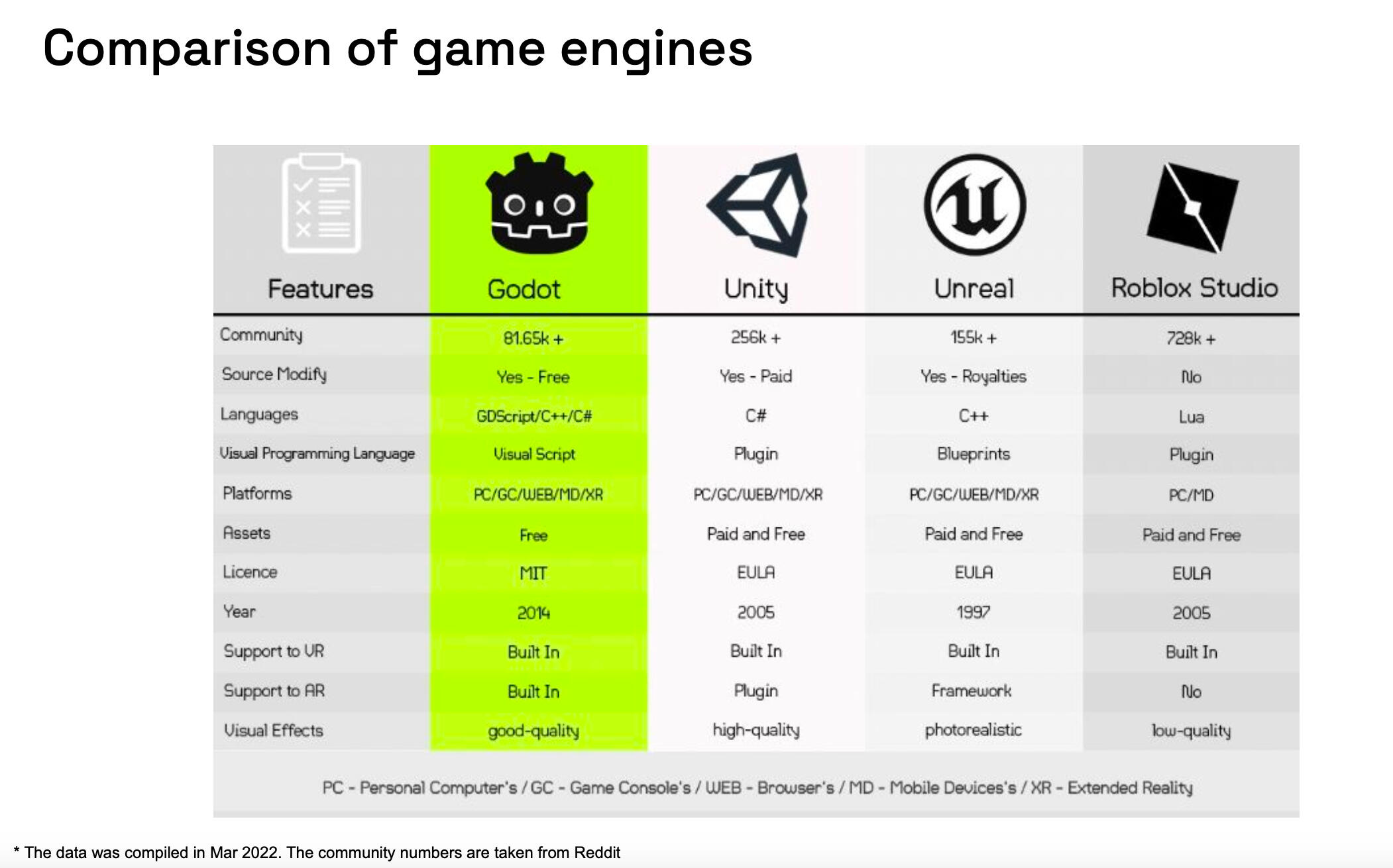 After a lot of deliberation and research, we decided to build our infrastructure on Godot. The biggest Open source modular gaming engine