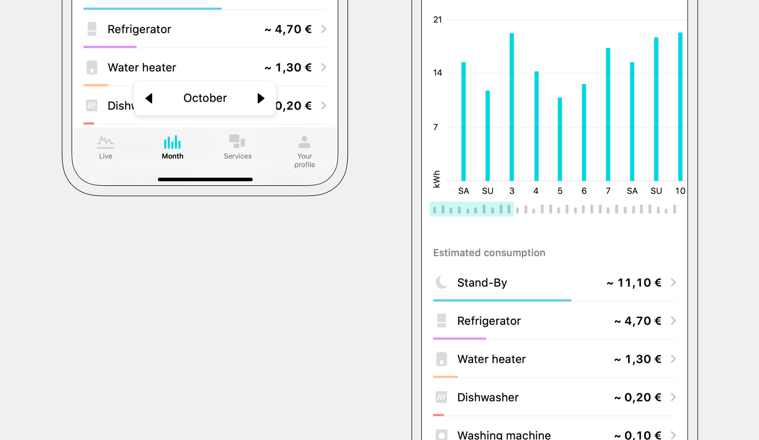 - For real-time total monthly cost plus disaggregated costs of appliances
